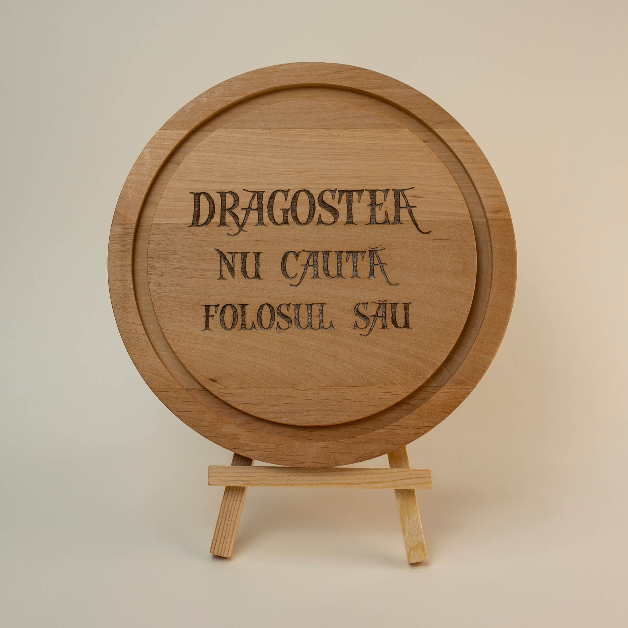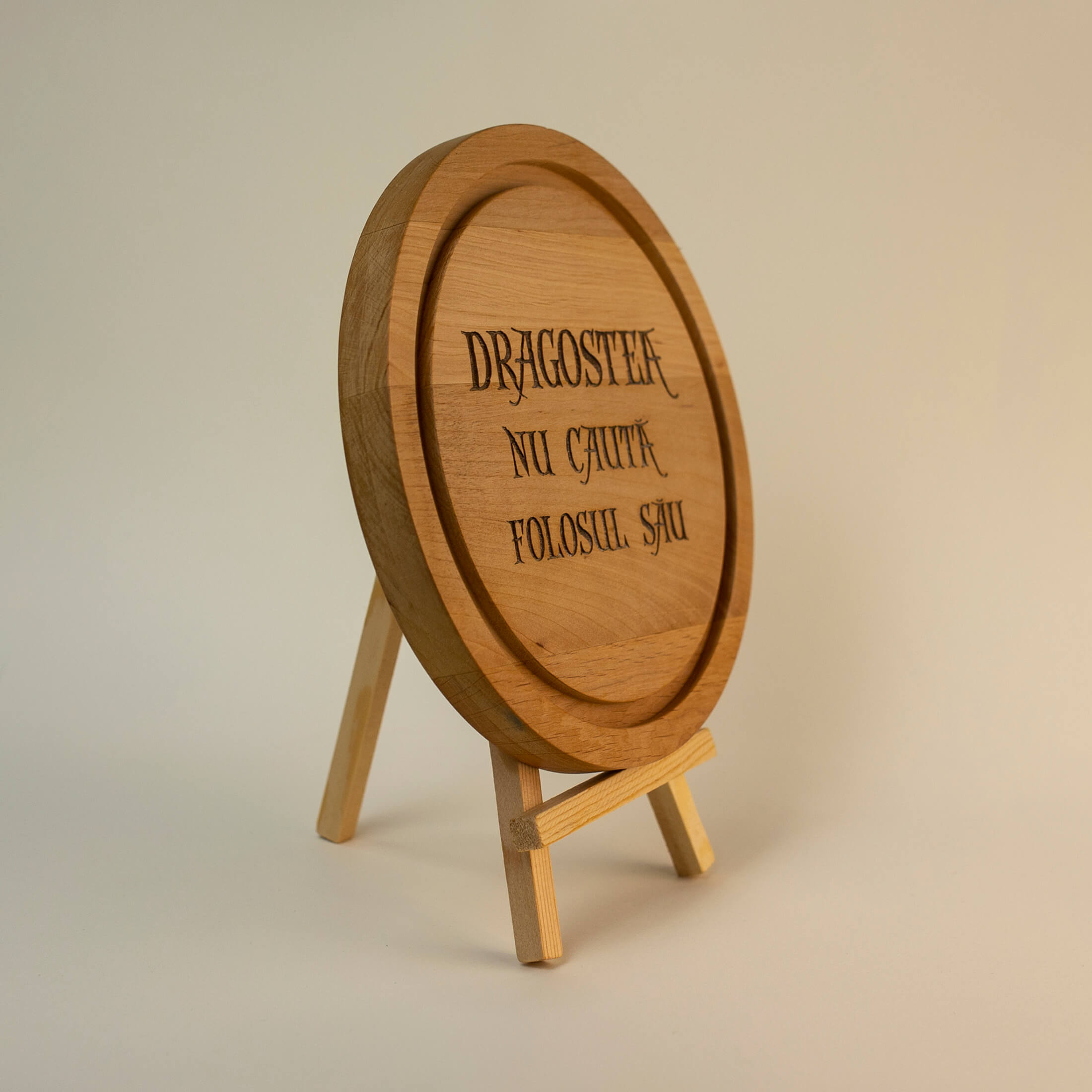 Acest tocător din lemn personalizat conține o parte din definiția dragostei găsită în 1 Corinteni 13. Acest text accentuează faptul că dragostea adevarata nu cunoaște egoismul sau mândria, ci întotdeauna îl pune pe celălalt deasupra.